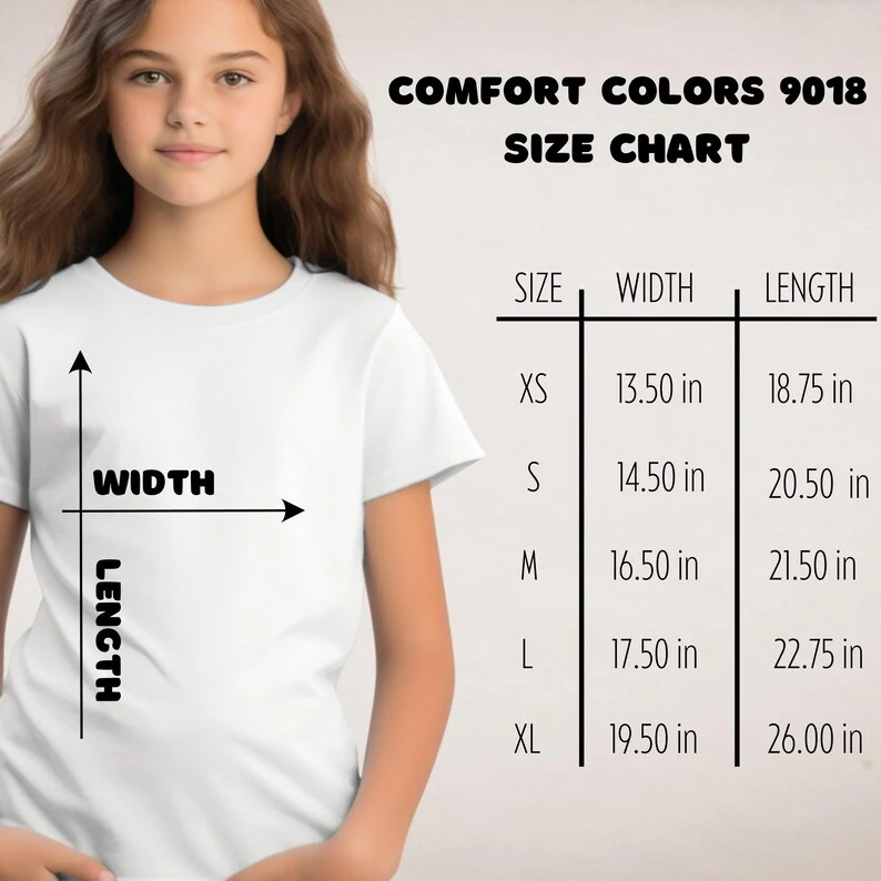 • This is a standard unisex size Comfort Colors® t-shirt with a relaxed fit.