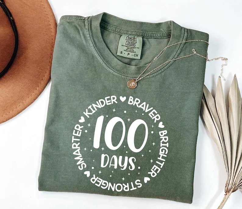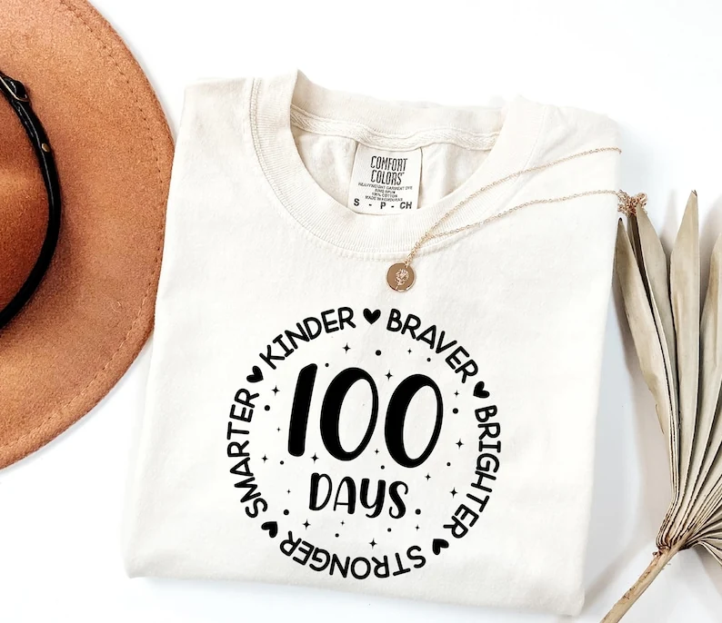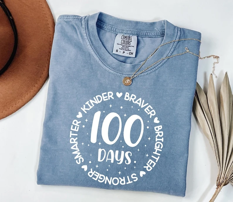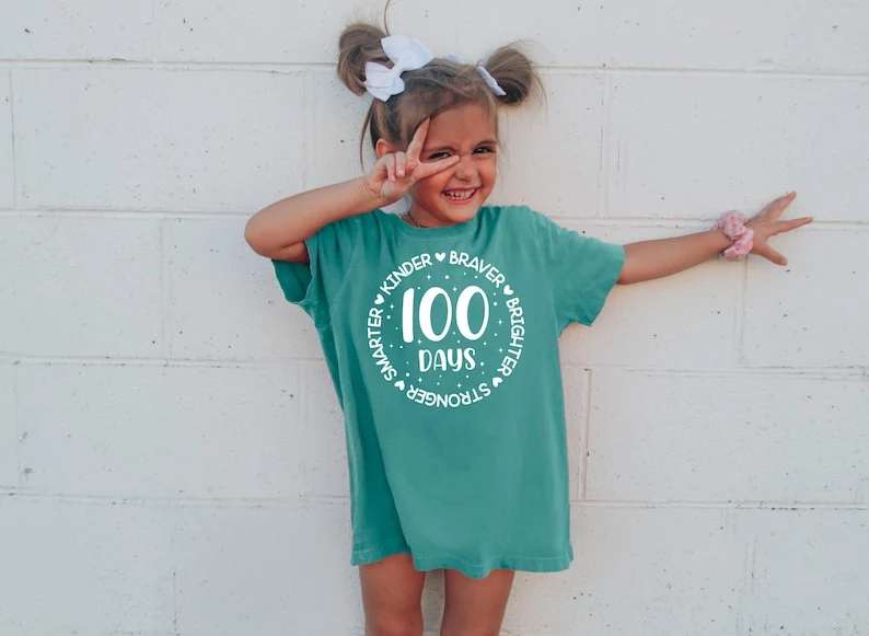 Celebrate the 100th day of school in style with this vibrant and cheerful Comfort Colors shirt. Made from soft, garment-dyed cotton, this vintage washed tee has that perfectly worn-in feel right from the start. It’s the perfect gift for a favorite teacher or a fun way for your little one to mark their big kindergarten milestone.
