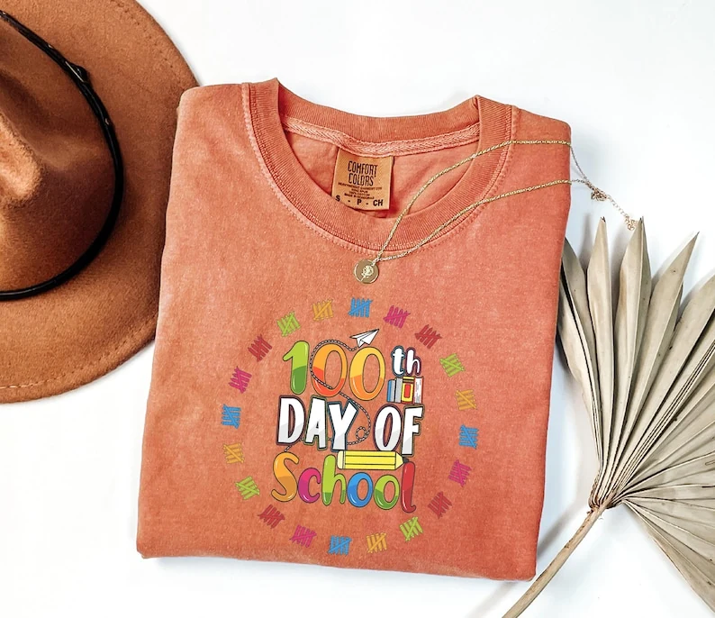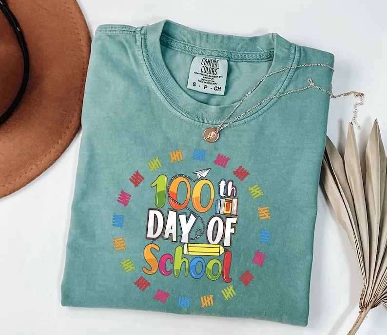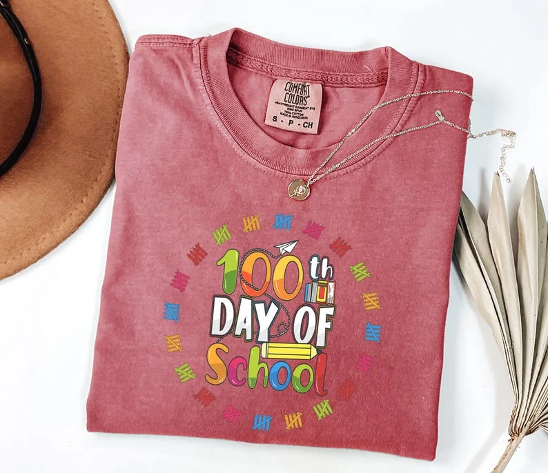 Celebrate the 100th day of school with the perfect gift for your favorite kindergarten teacher! This Comfort Colors shirt features a cute and festive design on a premium, garment dyed tee. Known for its vintage washed look and incredible softness, this is a cute teacher gift they’ll love to wear year after year.