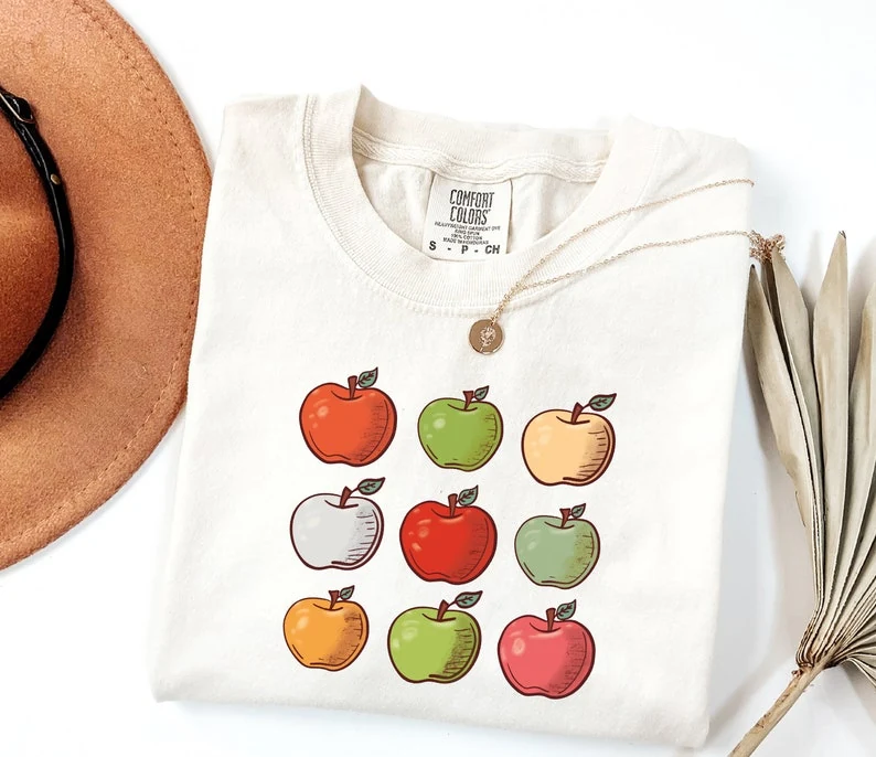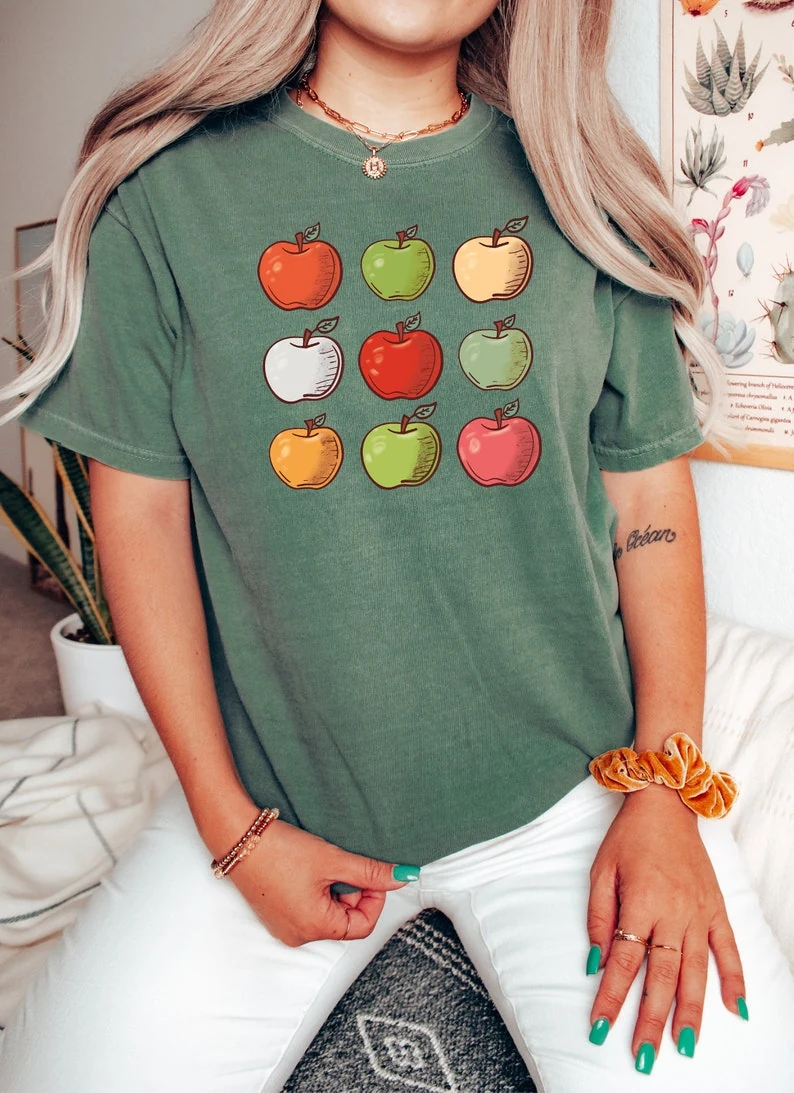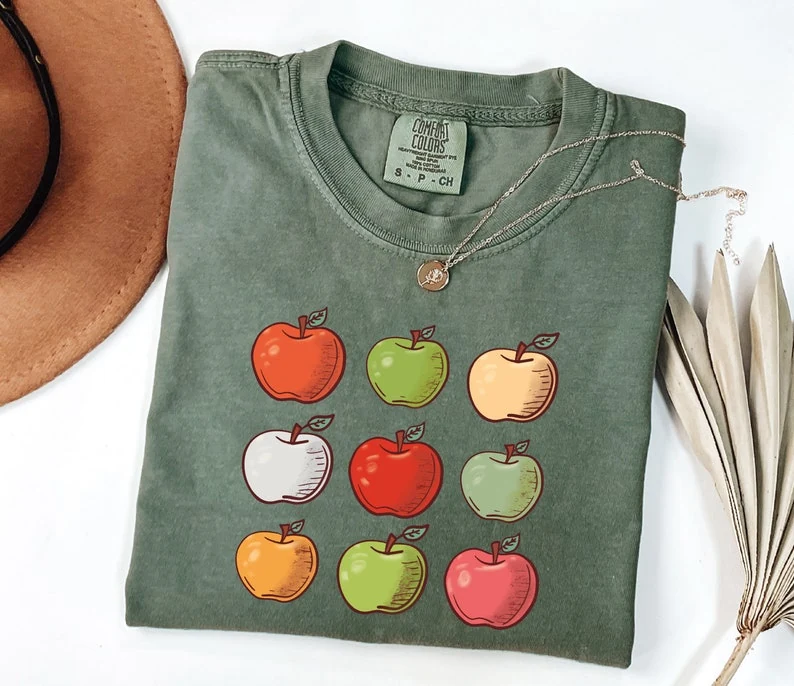 Embrace those sunny summer garden vibes with this charming apple shirt. This Comfort Colors shirt features a unique, vintage-washed look thanks to its garment-dyed fabric, making it the perfect cute women’s shirt for any apple lover. The relaxed, unisex fit offers all-day comfort for all your summer adventures.