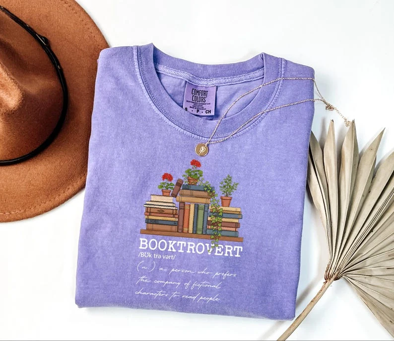 Embrace your inner booktrovert with this cozy and stylish Comfort Colors® shirt, the perfect gift for plant lovers and bookworms alike. Made from soft, garment-dyed fabric, this vintage-washed tee offers a relaxed, lived-in feel from the very first wear. Whether you’re shopping for a book-loving teacher or a gift for your book club crew, this bookish shirt is a must-have addition to any reader’s wardrobe.