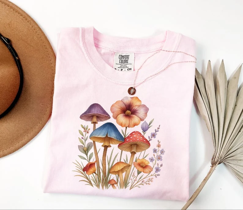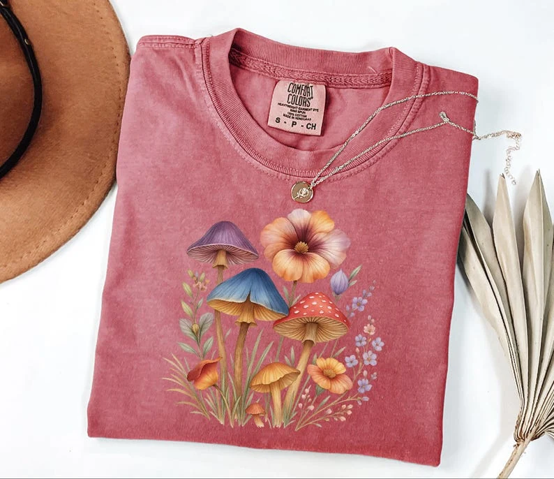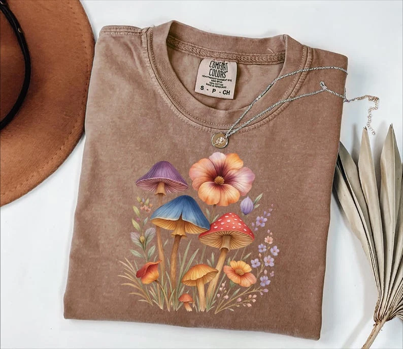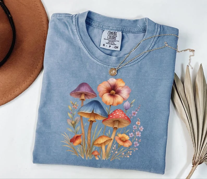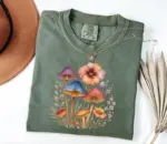 Embrace your inner nature lover with this Comfort Colors mushroom wildflower shirt, a perfect piece for any cottagecore or botanical aesthetic. This vintage washed tee offers a relaxed, unisex fit and the premium quality of a garment dyed tee, making it an instant wardrobe favorite. The charming mushroom and floral graphic is perfect for anyone who loves botanical illustrations and the magic of the forest.