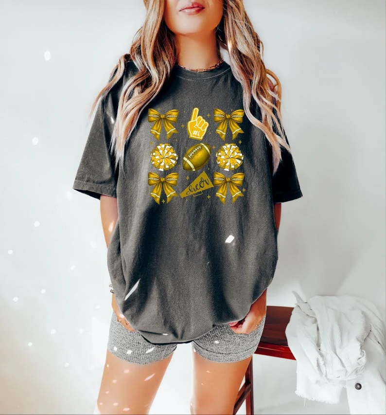 Show your team spirit this football season with this cute and trendy Football Bow Shirt, the perfect garment-dyed tee for game day. This Comfort Colors shirt features a vintage washed look that’s perfect for creating a stylish coquette cheerleading outfit or a comfy oversized tee for cheering from the sidelines. It also makes a great gift for any cheer mom supporting her favorite cheerleader!
