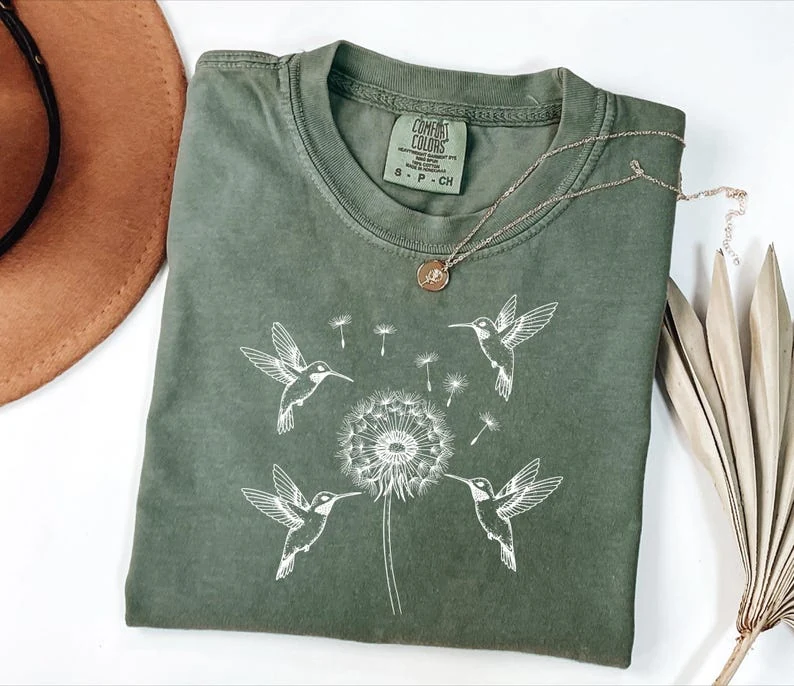 Embrace the delicate beauty of nature with our Comfort Colors® Dandelion Hummingbird Shirt. This garment-dyed tee offers a soft, vintage-washed look that perfectly complements its spiritual, good-luck design. It’s the ideal bird lover gift, offering a relaxed unisex fit for everyday comfort and style. This beautiful spring bird shirt is a wonderful addition to any wardrobe.