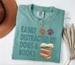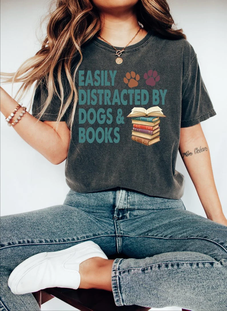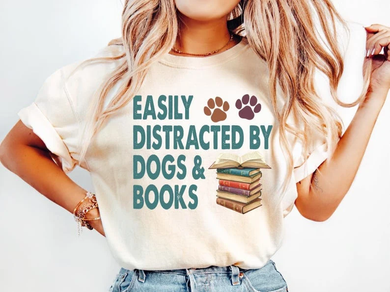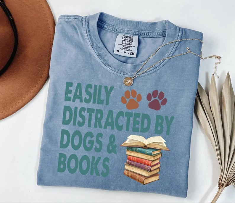 This “Easily Distracted By Dogs & Books” shirt is a fantastic gift for the book lover or dog lover in your life.