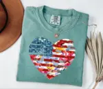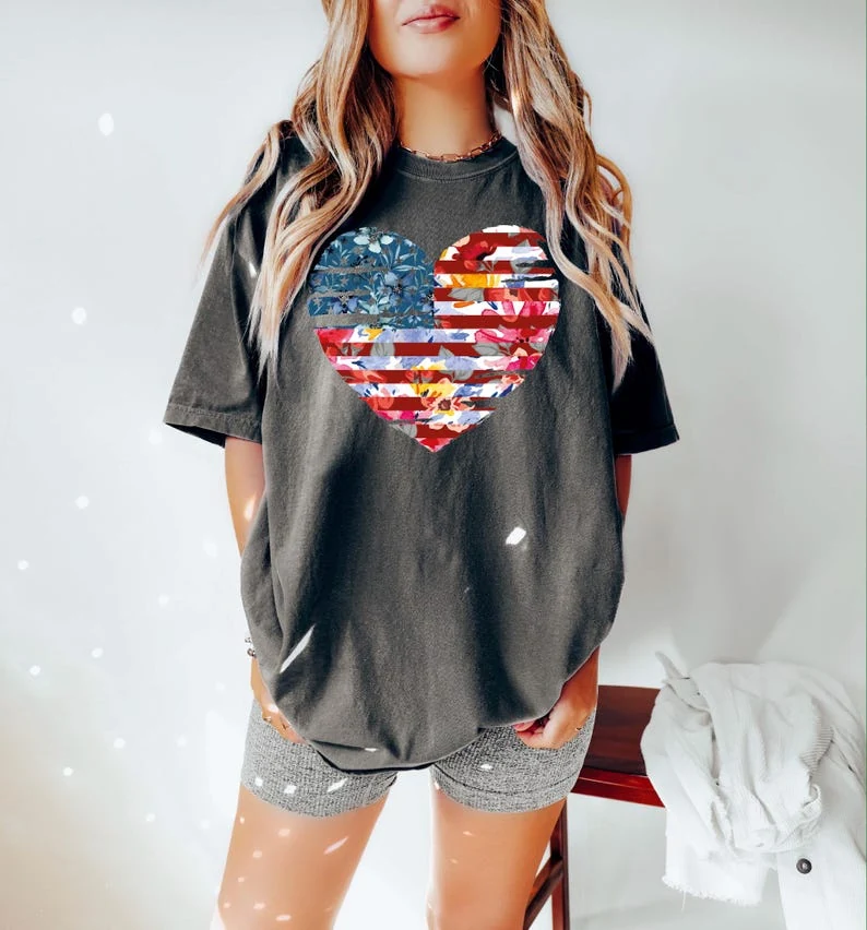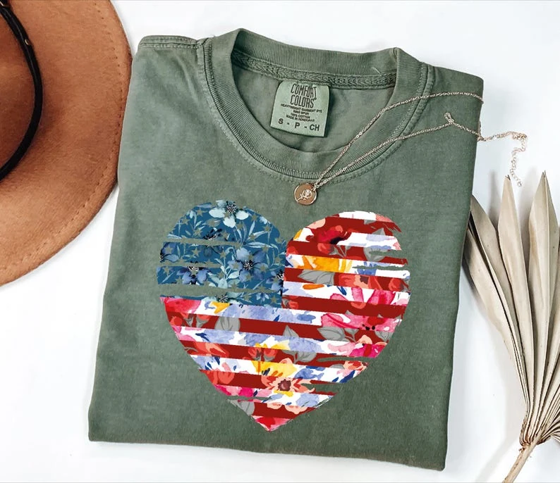 Show your patriotic spirit with this beautiful Floral Heart American Flag shirt, the perfect choice for any 4th of July celebration. This Comfort Colors shirt offers a trendy, vintage-washed look and an ultra-soft feel, making it a go-to for Independence Day parades, backyard barbecues, or any day you want to show some USA love. The garment-dyed fabric gives it a unique, lived-in vibe that only gets better with each wash.