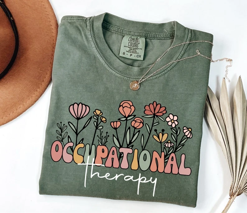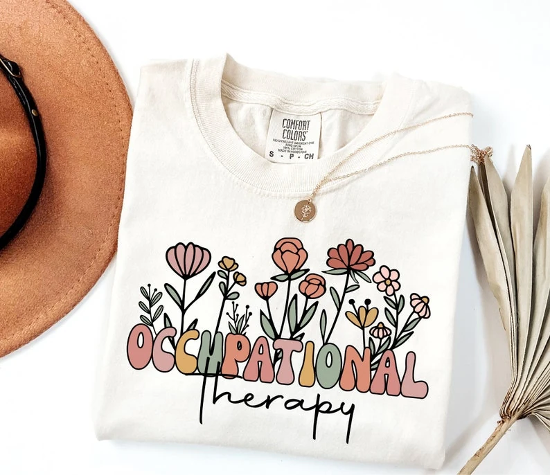 Celebrate the caring heart of an occupational therapist with this beautiful floral OT shirt. Made from the ultra-soft, vintage-washed fabric of a Comfort Colors® shirt, it’s the perfect gift for a therapist who brings so much comfort to others. This cute occupational therapist shirt is a stylish and meaningful way to show appreciation for the incredible work they do, especially for a pediatric OT.