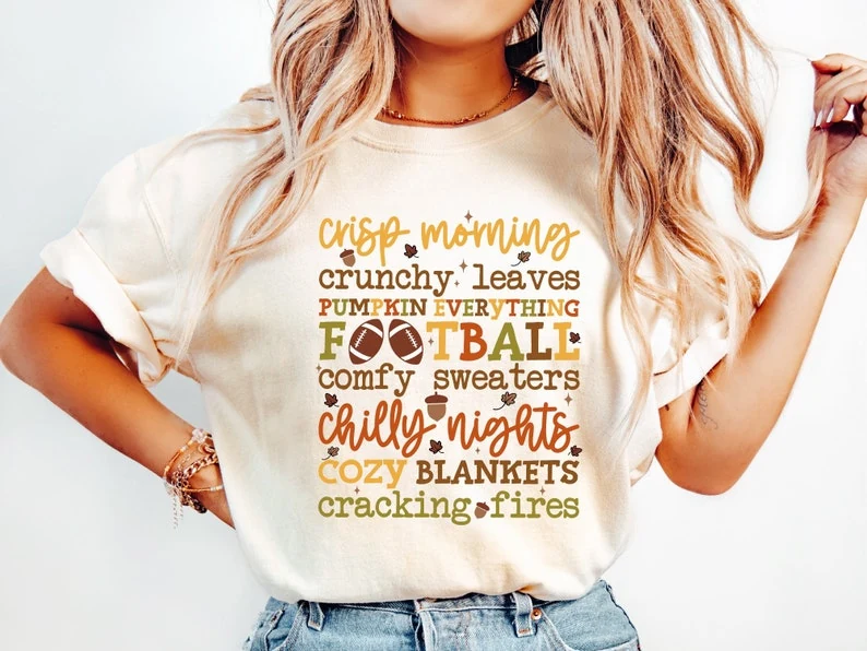 Celebrate the autumn season with a tee that brings together all your fall favorites: pumpkins, football, and a thankful spirit. This shirt is perfect for teachers, students, and families looking to show their love for everything autumn, from crisp game days to cozy Thanksgiving gatherings. Its festive design makes it a wonderful choice for seasonal events and holiday fun.